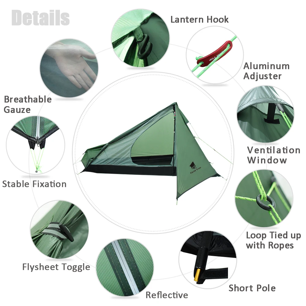 .image of GeerTop Ultralight Camping Tent One Person 3 Season Waterproof 950g Backpacking Tents No Trekking P