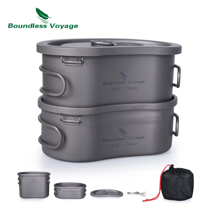 .image of Boundless Voyage Outdoor Titanium Pot with Folding Handle Hanging Ring Camping Hiking Ultralight Ca
