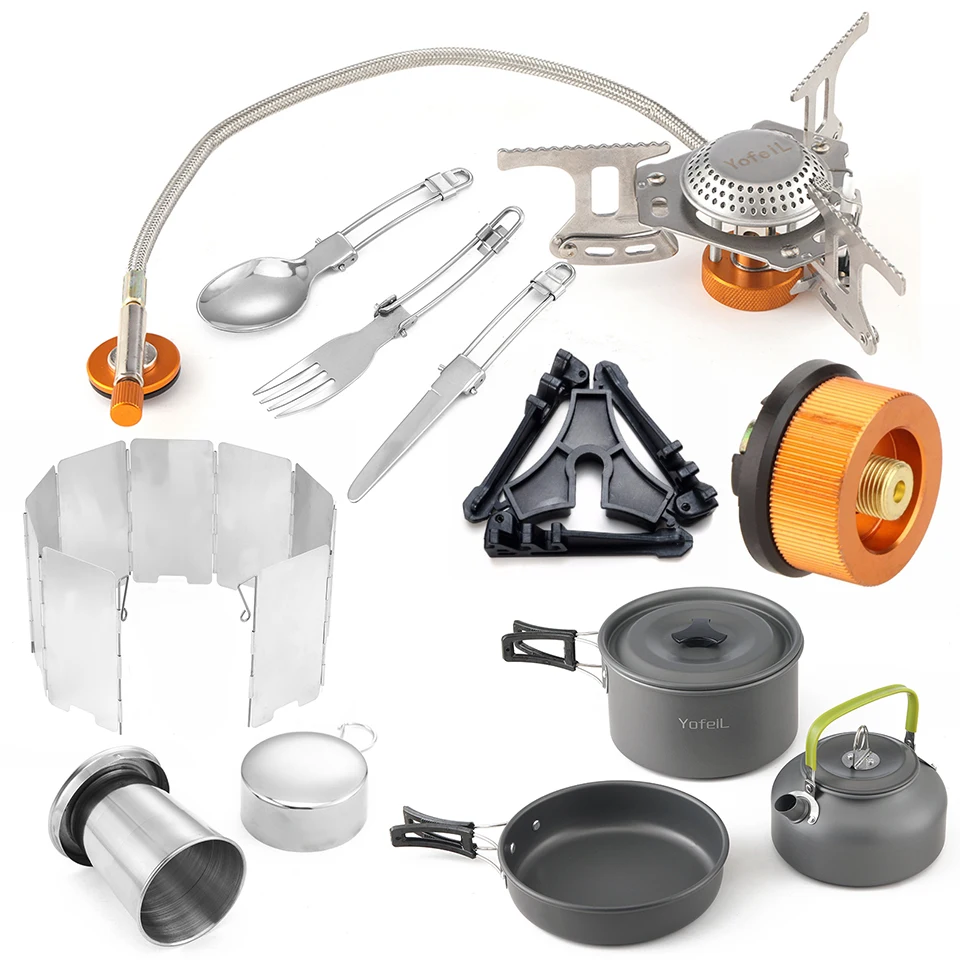 Outdoor Camping Pot Camping Tableware Cooking Set Gas Stove Gas Piezo Ignition Outdoor Kitchen Cookware Camp Hiking Supplies Barbecue Tools Accessories 9 Windshields Windproof Accessories