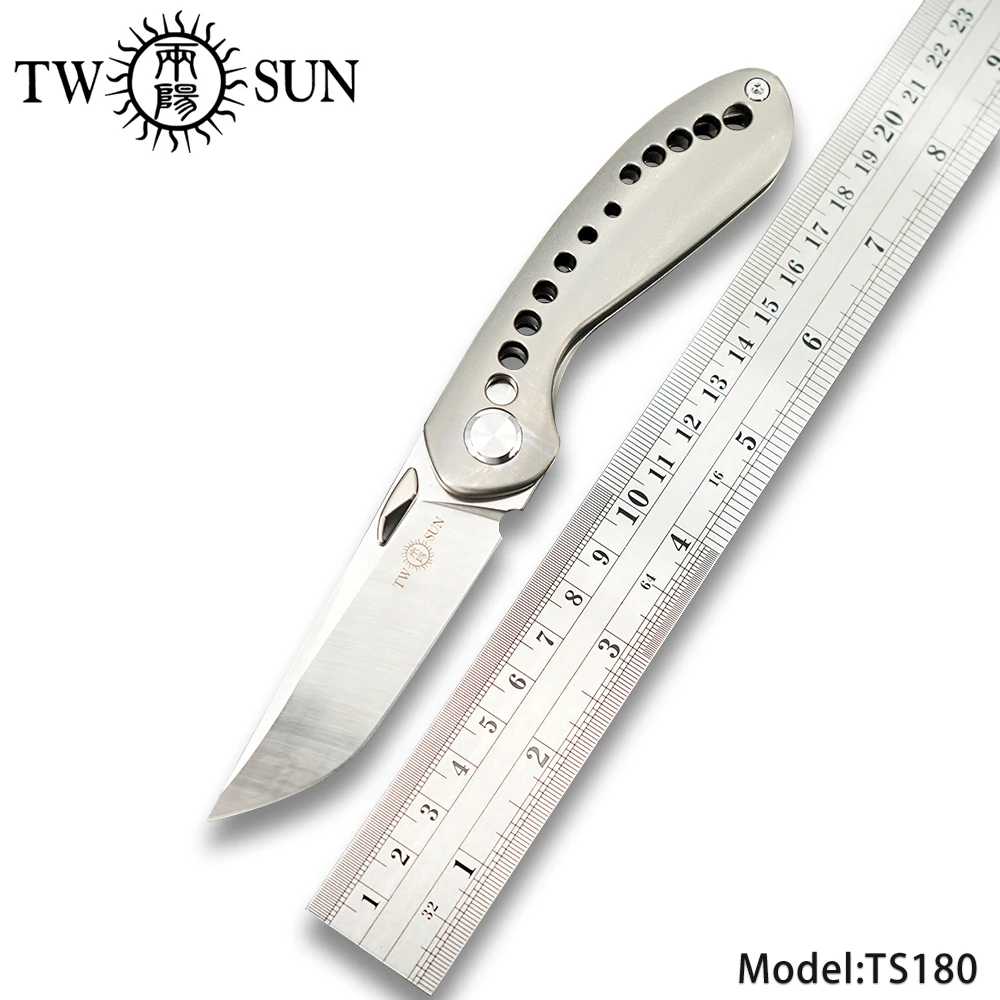 TWOSUN S90V blade folding Pocket Knife tactical Knife hunting knives survival tool EDC TC4 Titanium Ball Bearing Fast Open TS89