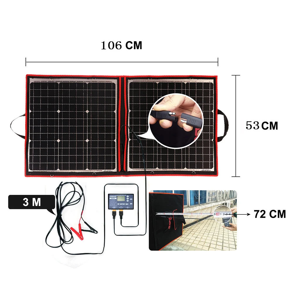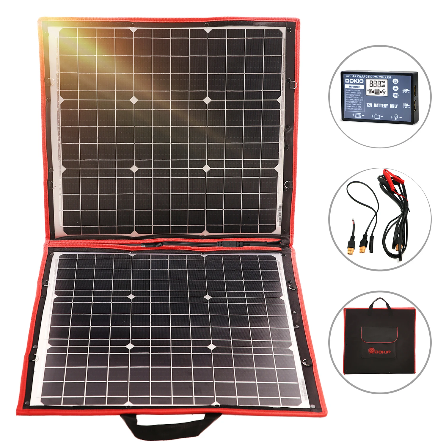 Dokio 100W (50Wx2Pcs) 18V Flexible Black Solar Panels China Foldable + 12V Controller 110 Watt Panels Solar For Car Battery